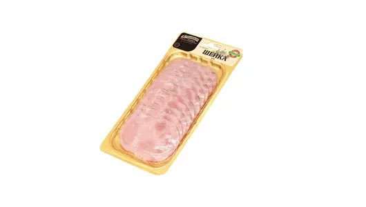 Продукт изготовлен из передней части свиной туши. Здесь, мышечная ткань плотно соседствует с жировой, что обеспечивает мясу мягкость и сочность. Эти качества удается подчеркнуть термообработкой, которая объединяет горячее копчение и варку. Нарезка помещена в вакуум, помогающий длительно сохранить свежесть, изысканный вкус и чудесный аромат деликатеса. Страна производитель-Россия