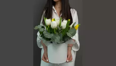 Флористы виртуозно собрали эту композицию, изумительно сочетая оттенки и формы бутонов. Каждый тюльпан расположен так, чтобы подчеркнуть его красоту и индивидуальность, создавая гармонию и динамику одновременно. Не только яркость цветов завораживает, но и самое сочетание различных оттенков – гармоничное и не лишенное индивидуальности. Стильная шляпная коробка служит не только практичной упаковкой, но и важным элементом дизайна. Она придает букету особый шарм и подчеркивает его изысканность. Компактный и в то же время эффектный, этот букет легко переносить и ставить в любое место. Он не требует специальной вазы и сохраняет свою свежесть на более продолжительное время. Подарите этот букет – подарите яркие эмоции, весеннее настроение и зарядите позитивом себя и того, кому он предназначен. Это идеальный подарок для любого повода или просто как приятный сюрприз, способный растопить любое сердце своей красотой и яркостью. Не упустите возможности подарить часть весенней сказки!
