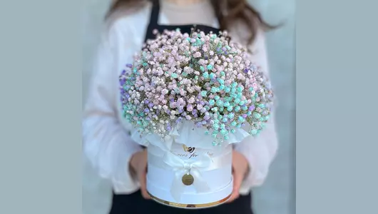 Шляпная коробка с гипсофилой (размер L) FMART by flowwow