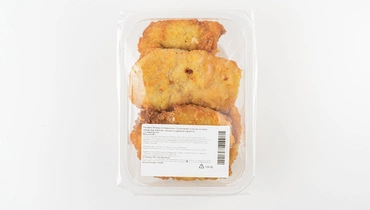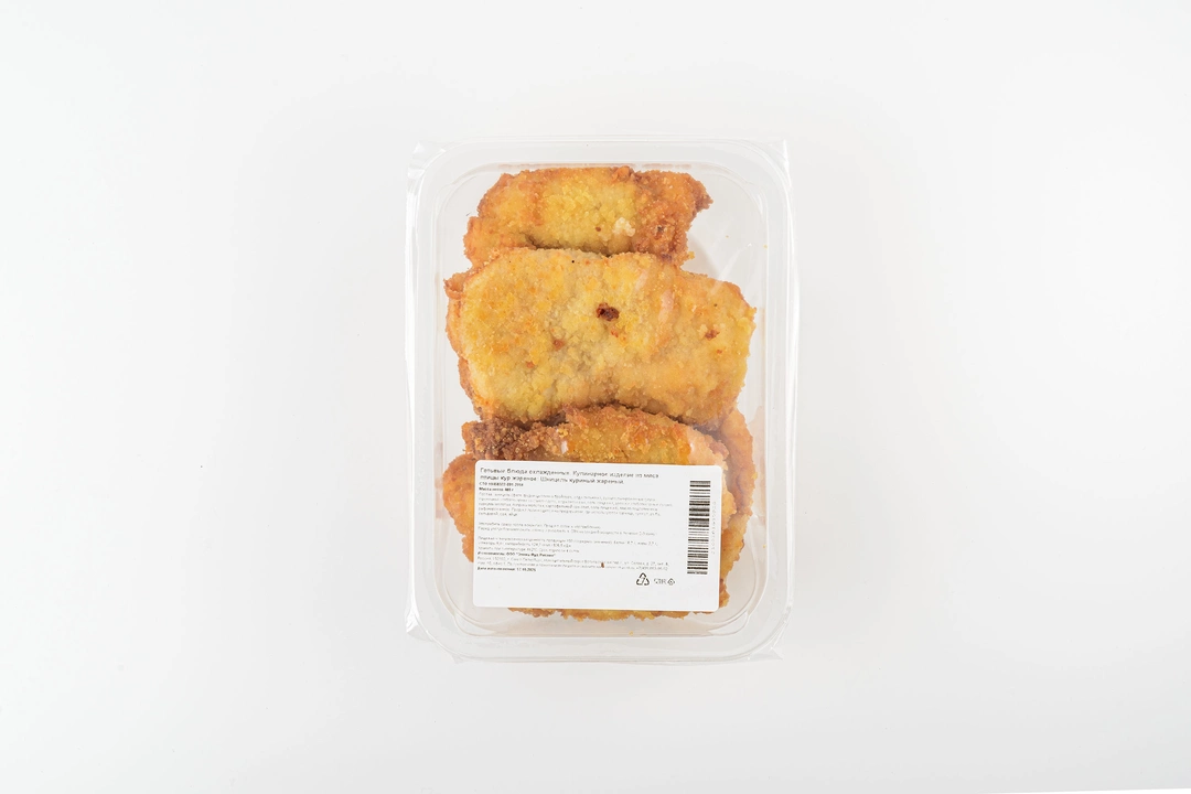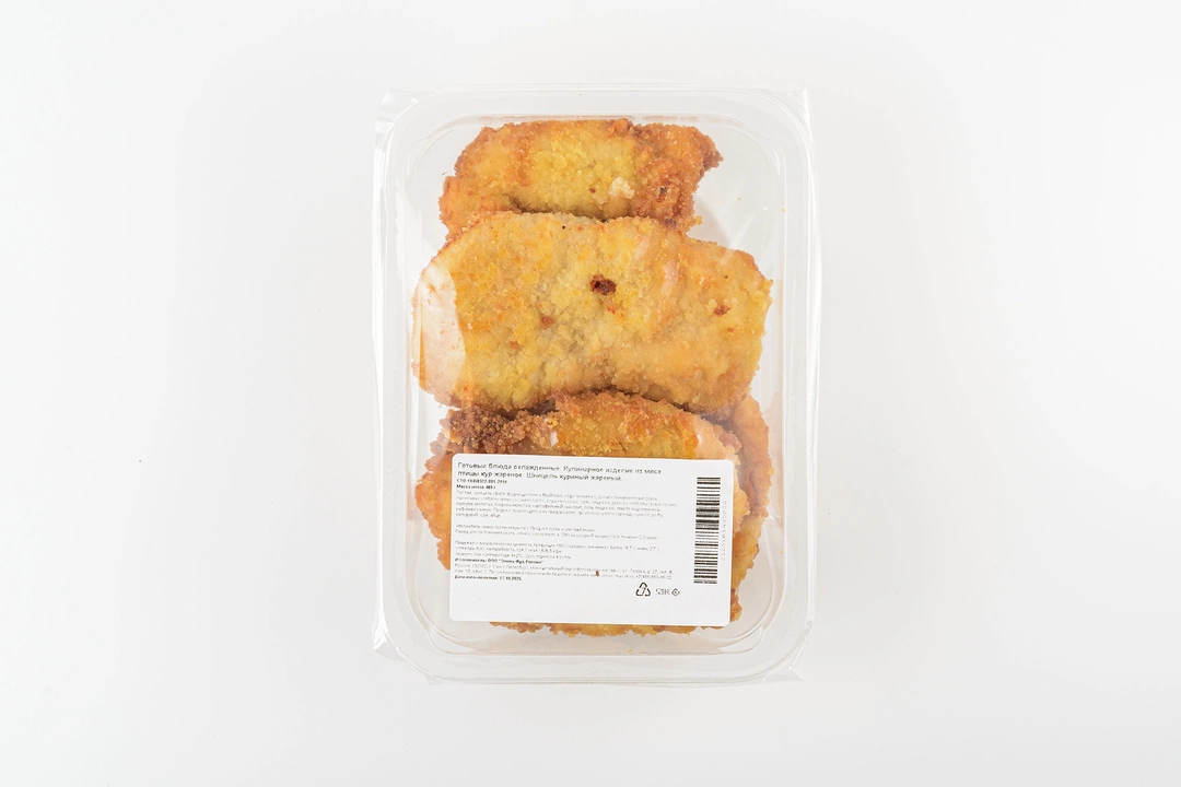 Куриное филе обжаривается до аппетитной золотистой корочки, а внутри остаётся мягким. В панировке используется смесь пшеничных сухарей, куркумы и паприки — они придают мясу лёгкий пряный оттенок и красивый цвет. Шницель можно подать с гарниром из картофельного пюре, свежих овощей или круп — получается сытное блюдо с выразительным домашним вкусом. Большой формат 480 г подойдёт для ужина всей семьи.