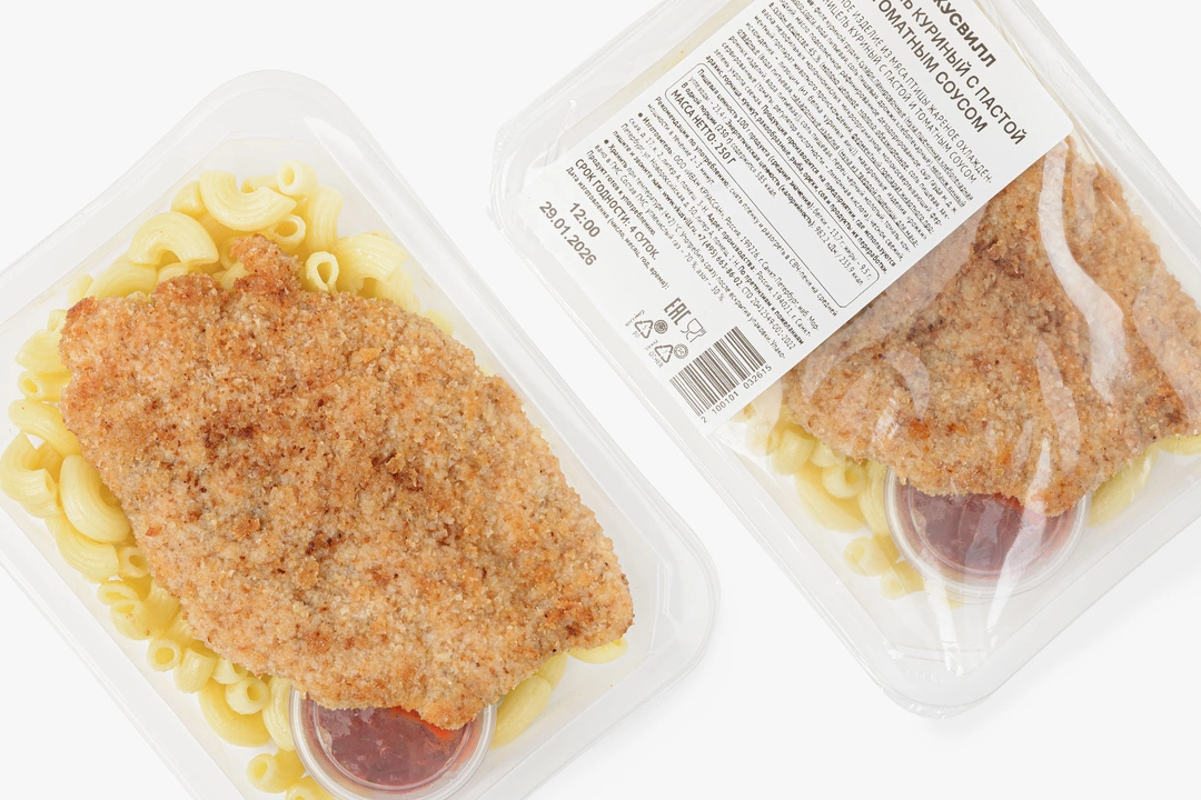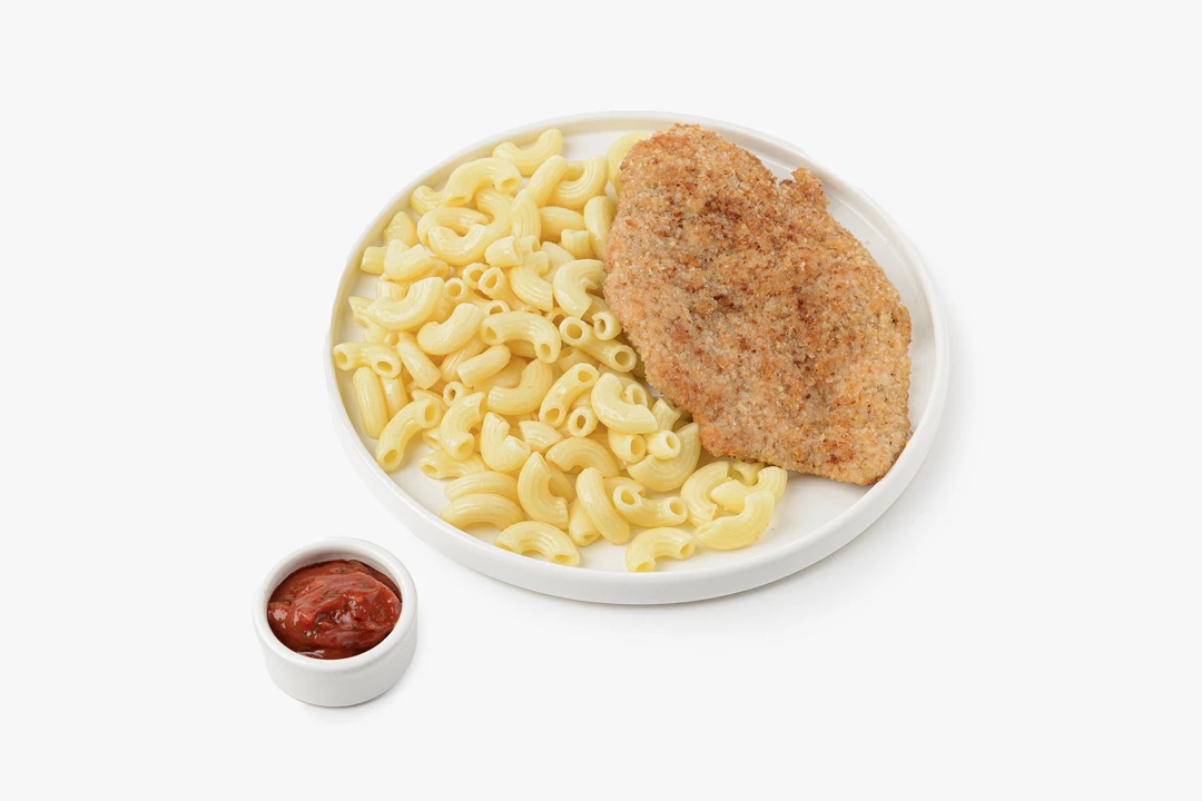 Шницель куриный с пастой и томатным соусом