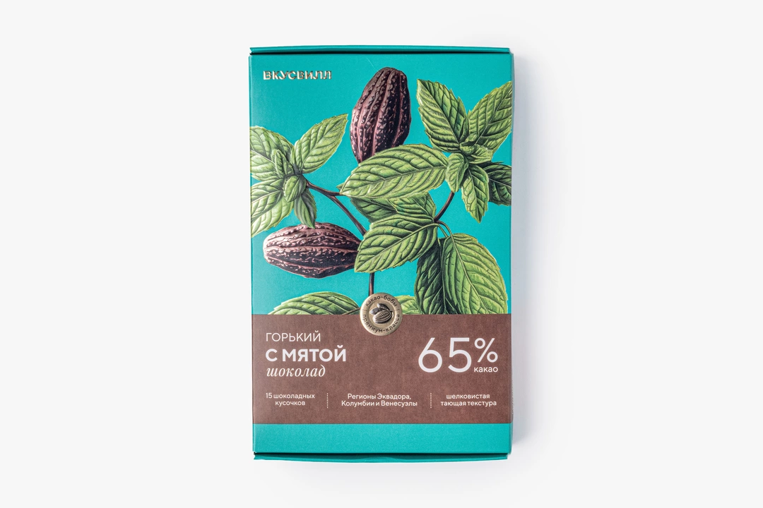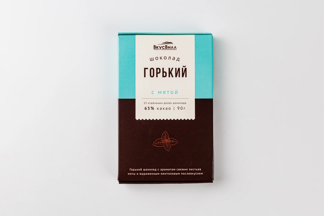 Горький шоколад (65 % какао) изготовлен на основе какао-продуктов Fino de Aroma из смеси изысканных ароматических какао-бобов криолло и тринитарио. Эти сорта обладают насыщенным и в то же время тонким шоколадным вкусом с мягкой горчинкой. Цветочные, фруктовые, ореховые ноты придают горькому шоколаду уникальный вкус и аромат. Сырьем для экстракта мята служат листья мяты, которая бережно собирается в экологически чистых регионах России. Время сбора - начало цветения, когда растение набирает полную гамму вкусоароматических компонентов. Присутствие в горьком шоколаде аромата свежих листьев мяты и выраженного ментолового послевкусия делает его уникальным и неповторимым.