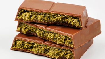 Молочный шоколад с хрустящими нитями теста катаифи, тёртыми фисташками и добавлением белого шоколада. Его можно разломить на кусочки и подать к кофе или чаю — необычная начинка будет смотреться оригинально и аппетитно. Десерт хорош как дополнение к сырам, фруктам и другим лакомствам. Его изысканный вкус оценят не только любители сладкого, но и поклонники неожиданных сочетаний и рецептов с восточными мотивами. Продукт не содержит искусственных ароматизаторов.