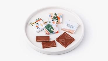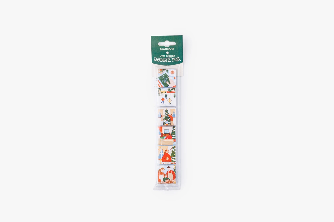Молочный шоколад в удобном формате: 6 плиток по 5 грамм. Он приготовлен из какао-масла и тёртых бобов с добавлением молока и экстракта ванили. В составе нет искусственных ароматизаторов и усилителей вкуса, поэтому продукт оценят любители натуральных сладостей. На обратной стороне каждой обёртки вы найдёте милое новогоднее пожелание. Такой набор приятно подарить не только близкому человеку, но и самому себе, ведь лакомство создаст праздничную атмосферу и зарядит хорошим настроением.