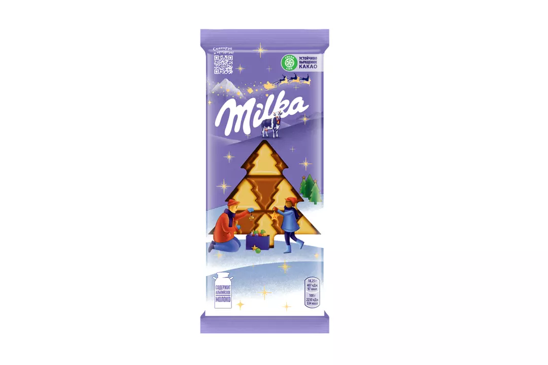 Новогодний шоколад в виде елочек MILKA, 73 г — сочетание двух любимых многими видов шоколада: классического молочного и нежного белого. Плитка шоколада MILKA, 73 г изготовлена в виде маленьких елочек, поэтому нежность и волшебство от ее вкуса так легко разделить с друзьями и близкими, собравшимися за новогодним столом. Молочный шоколад MILKA с альпийским молоком — настоящая классика, которая понравится как искушенным ценителям шоколада, так и детям. Его гармонично дополняет белый шоколад, оставляя нежное сливочное послевкусие после каждого съеденного кусочка. Шоколад новогодний молочный с белым в виде елочек MILKA, 73 г сделает ваш Новый год нежнее, веселее и вкуснее! Страна-производитель Россия