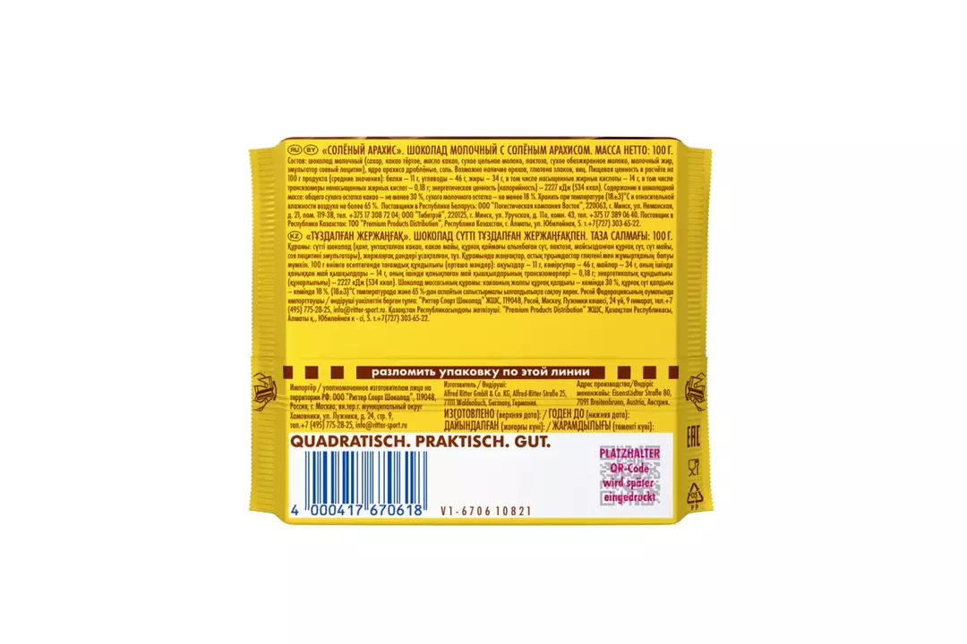 Шоколад молочный Ritter Sport Соленый арахис 100 г / Супермаркет