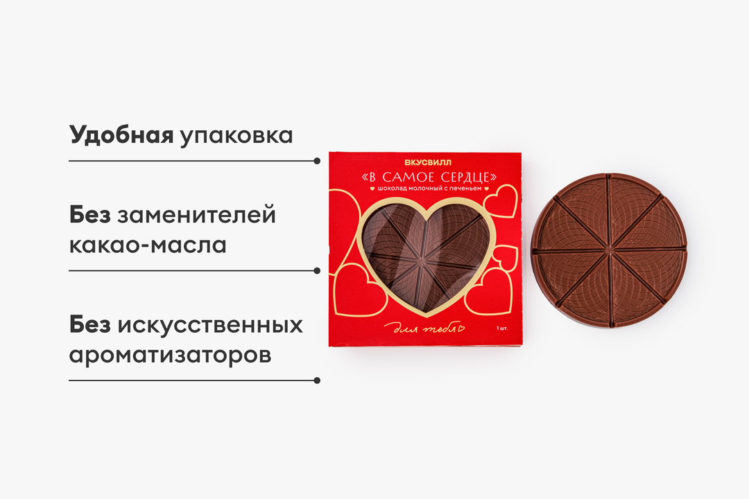 Шоколад молочный с печеньем "В самое сердце"