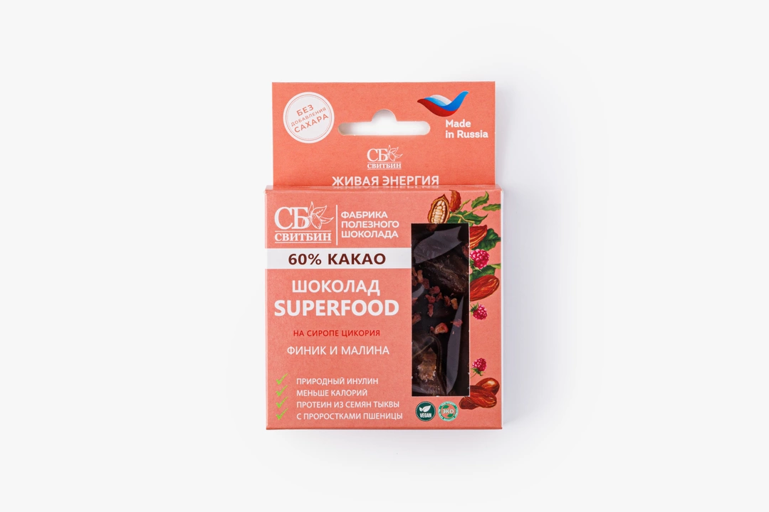 Шоколад Sweet Bean на сиропе цикория Финик и Малина 45 г