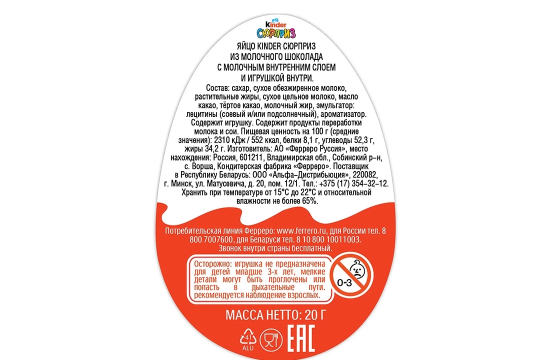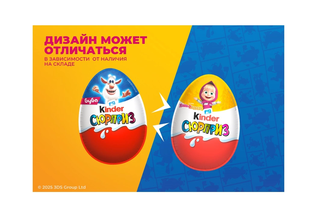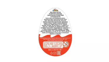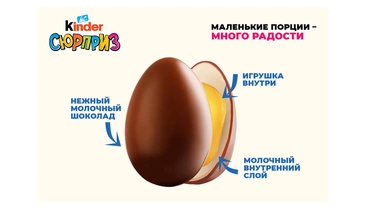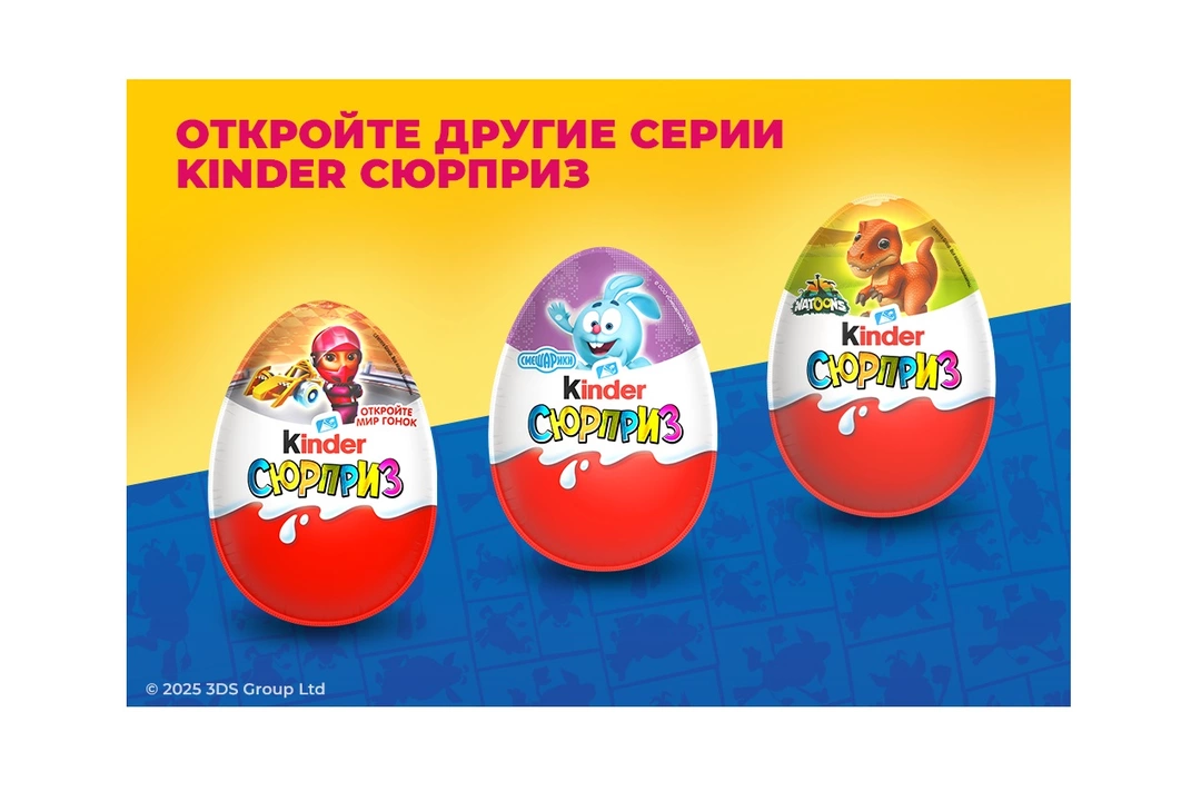 Kinder Сюрприз – яйцо из молочного шоколада с молочным внутренним слоем и игрушкой внутри. Уникальная рецептура с высоким содержанием молочных ингредиентов разработана специально для детей, а игрушки из каждой коллекции производятся из безопасных для детей материалов и проходят строгий контроль качества. Мы знаем, что вы и ваши дети уникальны. У вас разные интересы, предпочтения, а также ожидания от покупки. Одних приводят в восторг милые зверята, других радуют герои из любимых мультфильмов, а третьи коллекционирует машинки или космические судна. И родители тоже выбирают по-разному: кто-то хочет покупать игрушки, которые развивают навыки и воображение ребёнка, иные – устраивать приятные сюрпризы без поводов и удивлять. Именно поэтому в Kinder Сюрприз представлено сразу 4 серии — чтобы каждый родитель нашёл идеальный подарок для своего ребёнка. Игрушки Kinder Сюрприз можно отсканировать и оживить в приложении Applaydu. Applaydu – это бесплатное приложение для обучения в игровой форме в кругу всей семьи! Вместе вы можете придумывать истории и создавать уникальный творческий мир. Также ребенок может познакомиться с цифрами, цветами, выучить новые слова, узнать больше о новых странах и животных. Оживите свои игрушки и играйте вместе в любое время! *Дизайн может отличаться в зависимости от наличия на складе. Страна-производитель Россия