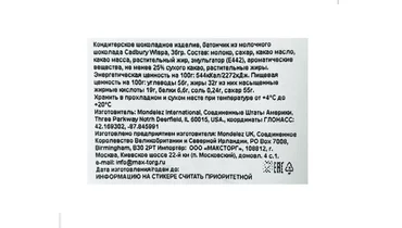 Виспа - это сладкий батончик из молочного шоколада от всемирно известной компании Cadbury. Бархатный молочный шоколад с тысячей нежных воздушных пузырьков. Шоколадный батончик станет прекрасным дополнением к вашему утреннему кофе или чаю и порадует вас и ваших близких своим неповторимым вкусом и качеством. Соединенное Королевство Великобритании и Северной Ирландии.