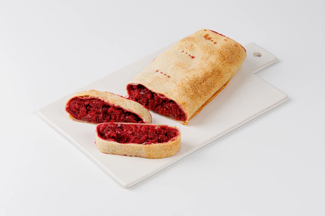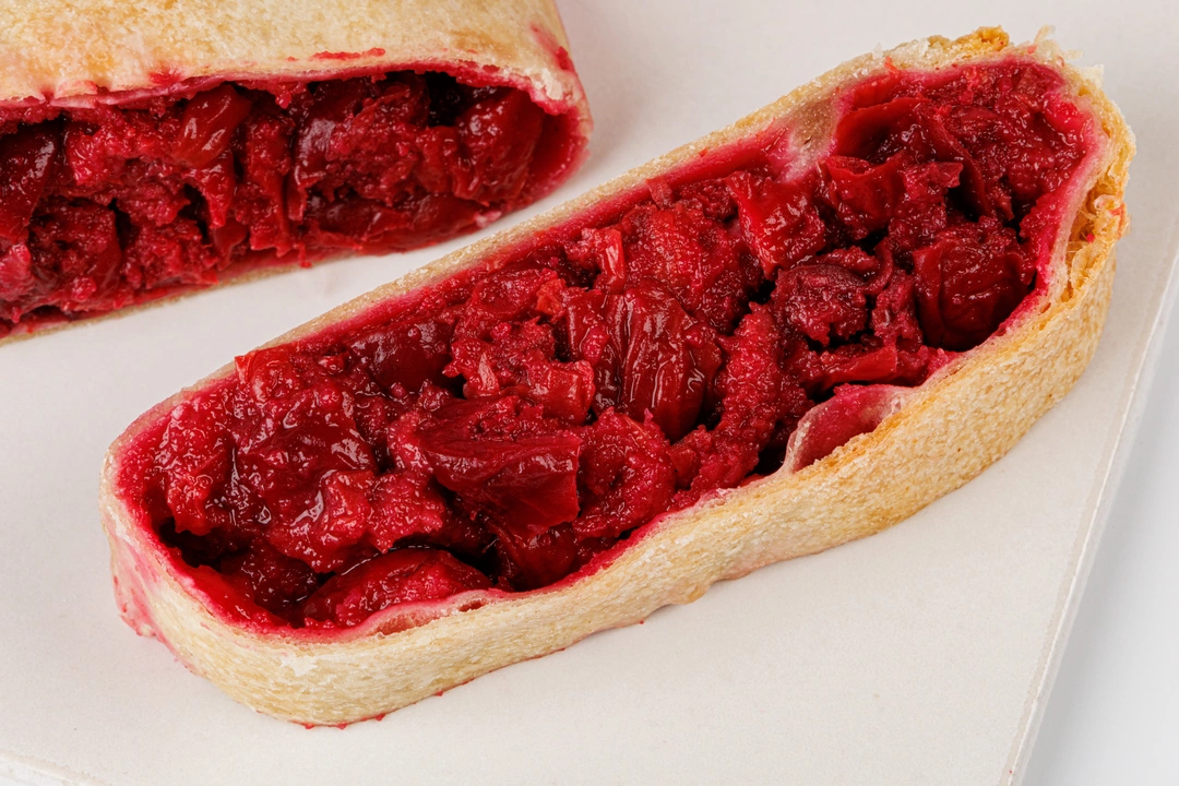 Классический штрудель с вишнёвой начинкой для веганского рациона. Вишня без косточек придаёт десерту приятную кислинку. Продукт замороженный, для долгого хранения в морозильной камере.