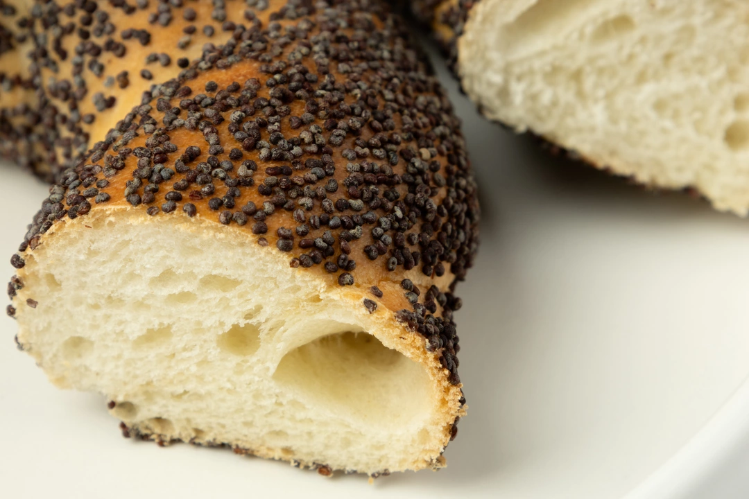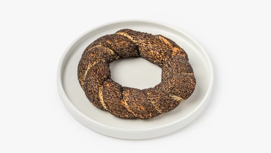 Традиционный турецкий бублик с воздушным тестом и посыпкой выпечен на оливковом и подсолнечном масле. Сверху выпечка украшена семенами мака.