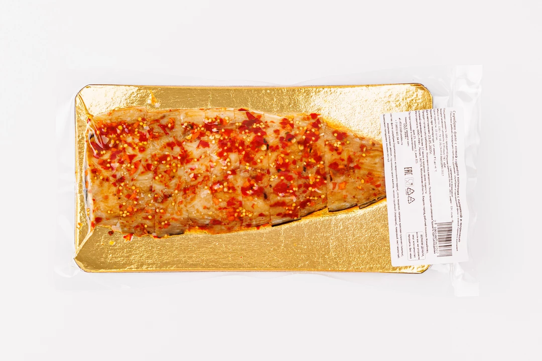 Ароматная скумбрия горячего копчения с яркой паприкой, морковью, зёрнами горчицы и специями. Она в меру жирная, с насыщенным вкусом и натуральным ароматом с дымком. Готовим методом натурального горячего копчения на древесной щепе, без консервантов. Кожа не очищается специально — она задерживает продукты горения и сохраняет текстуру рыбы. Сочетание копчения и приправ создаёт дымно-пикантный вкус, а чеснок добавляет композиции остроту и глубину. Филе уже нарезано на порционные кусочки — удобно подать к столу без дополнительной подготовки. Скумбрия хороша с отварным картофелем, ржаным хлебом или как закуска на рыбной тарелке.