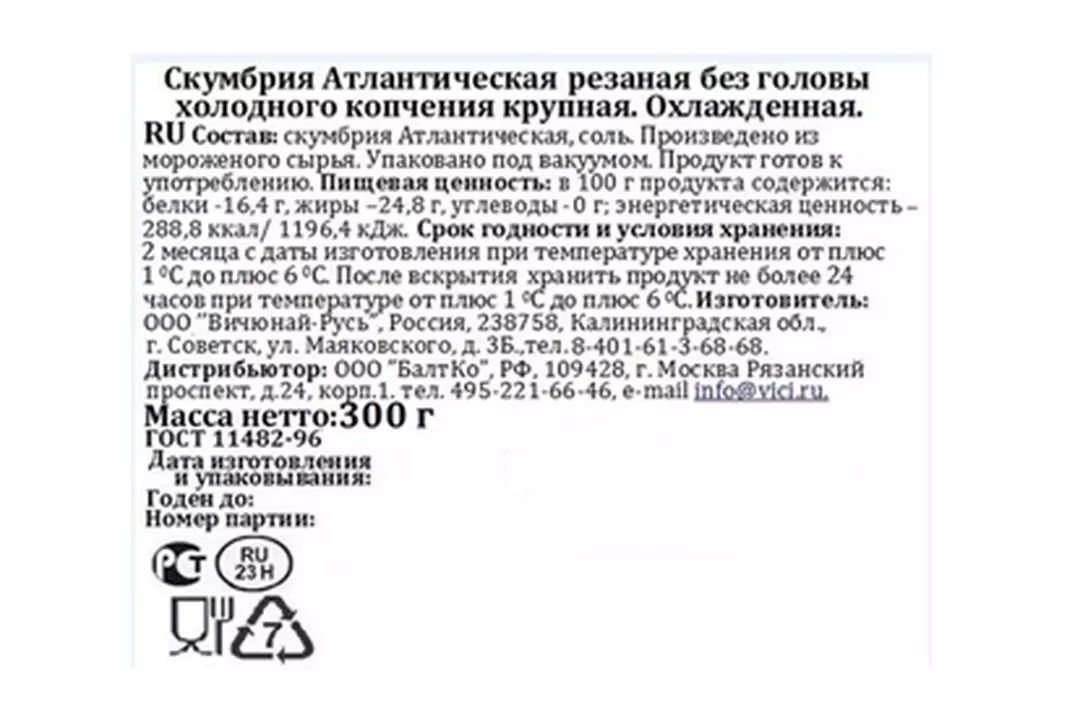 Скумбрия кусочки Vici Атлантическая крупная холодного копчения резаная без головы 300 г / Супермаркет