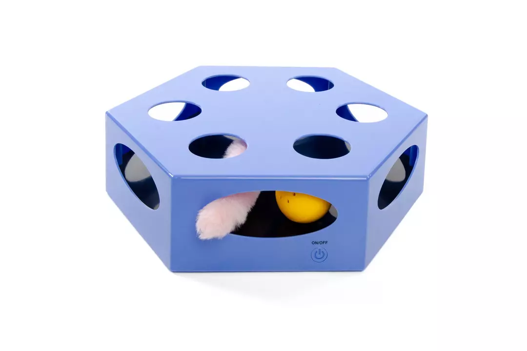 SkyRus Игрушка для кошек интерактивная "Hexagon Maze", голубая, 20.4x6.8x23см + батарейки
