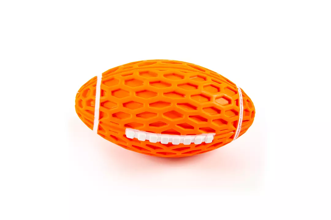 SkyRus Игрушка для собак резиновая "Мяч регби с сотами", оранжевая, 14.5x8.2x7.9см