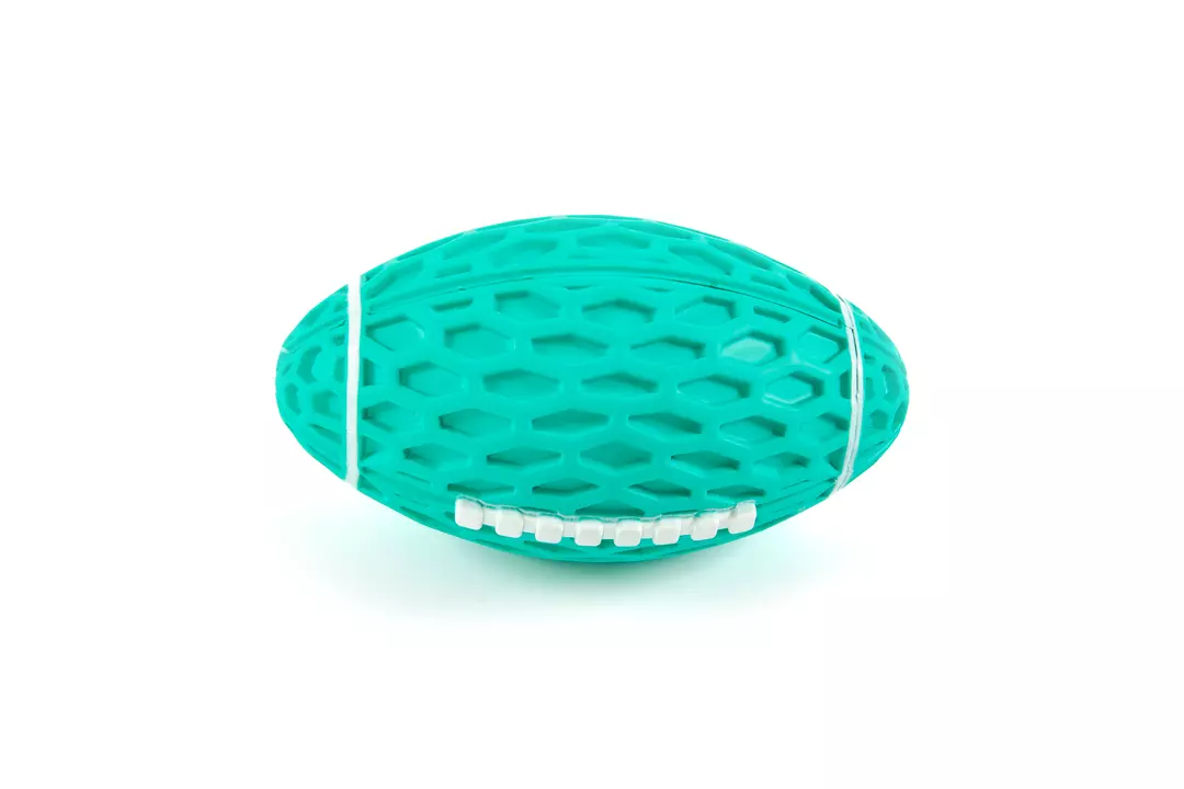 SkyRus Игрушка для собак резиновая "Мяч регби с сотами", зелёная, 14.5x8.2x7.9см