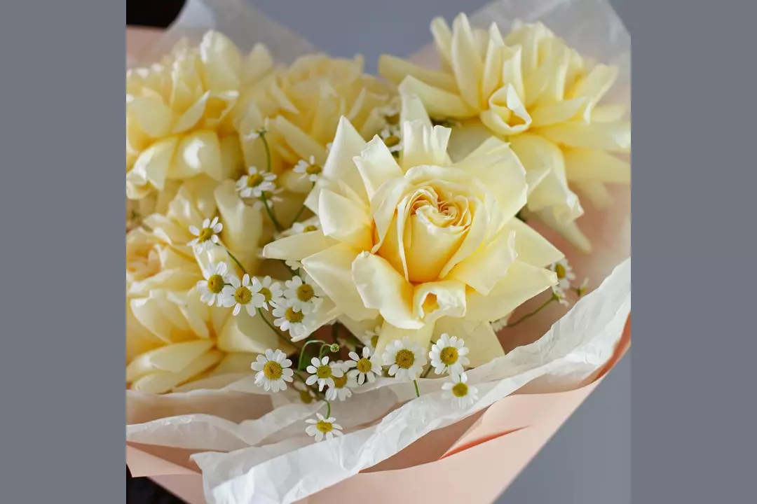 Сладкий зефир. Букет французские розы и ромашки FMART by flowwow