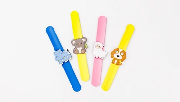 Этот браслет — игрушка и детский аксессуар одновременно. Фигурка в виде забавного зверька в центре украшает его и делает особенно любимым у детей. Браслет удобно надевать даже одной рукой — достаточно слегка хлопнуть им по коже, и он сам обернётся вокруг запястья. В ассортименте несколько видов с разными украшениями, из них можно собрать целую коллекцию.