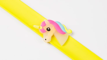 Этот браслет — игрушка и детский аксессуар одновременно. Забавная фигурка в центре украшает его и делает особенно любимым у детей. Браслет удобно надевать даже одной рукой — достаточно слегка хлопнуть им по коже, и он сам обернётся вокруг запястья. В ассортименте несколько видов с разными украшениями, из них можно собрать целую коллекцию.