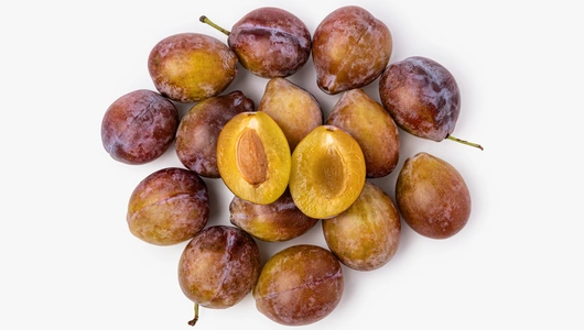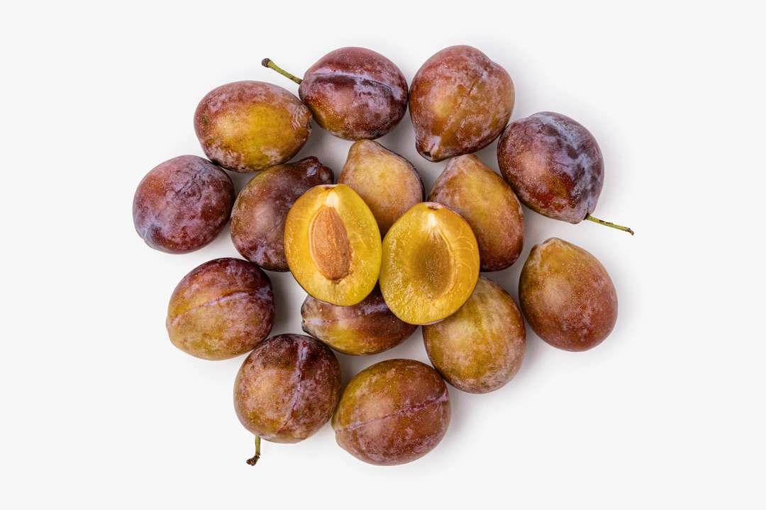 Слива сорта Дажен — сочная, с янтарной мякотью и тонкой кожицей. Вкус сбалансированный: в меру сладкий, с лёгкой фруктовой кислинкой. У неё тонкий летний аромат с нотами мёда и спелых фруктов. Отлично подойдёт для перекуса, компотов, варенья или выпечки.