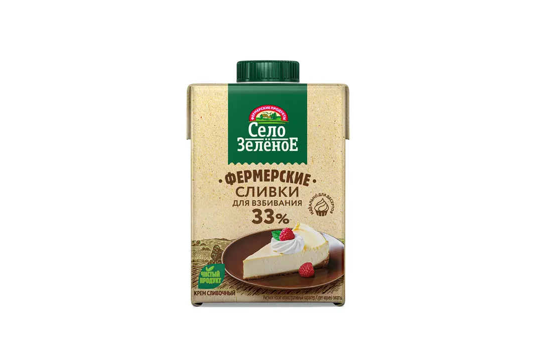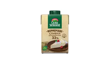 Сливки питьевые Село Зеленое для взбивания ультрапастеризованные 33% 500 г / Супермаркет