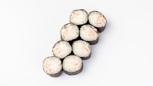 Изящная классика, построенная на идеальном балансе нежности. Сердце ролла - отварная тигровая креветка и густой слой натурального творожного сыра, которые создают обволакивающий, тающий вкус. Благородный рис, заправленный традиционным соусом на основе рисового уксуса, деликатно подчеркивает сладость морепродуктов. Завершают композицию тонкие листы водорослей нори, а подача с терпким соевым соусом, маринованным имбирем и жгучим васаби расставляет правильные акценты в этом гармоничном ансамбле.