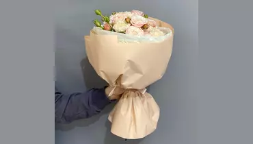 Нежнейший и воздушный букет. Состав: Гортензия - 1 шт. Гвоздика - 6 шт. кустовая роза мадам бомбастик - 2 шт.