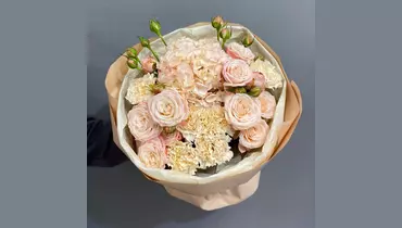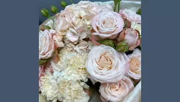 Сливочный пирожное. Букет с кустовыми розами гортензией и гвоздиками FMART by flowwow