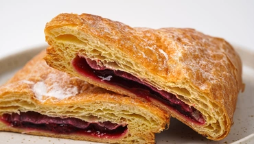 Золотистая, с хрустящей корочкой и нежной слоистой текстурой — эта слойка наполнена вишнёвой начинкой с характерной кислинкой. Ягоды остаются сочными и сохраняют вкус спелой вишни, а тесто на сливочном масле получается мягким внутри и приятно хрустит снаружи. Контраст сладкого и кислого делает десерт особенно выразительным. Подходит для лёгкого перекуса, чаепития или дополнения к утреннему кофе. Особенно вкусна чуть подогретой — начинка становится мягче, а аромат — ярче.