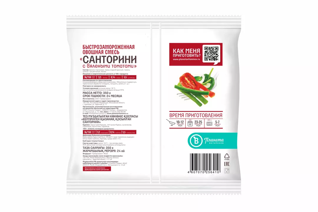 Смесь овощная Планета Витаминов Санторини с вялеными томатами замороженная 350 г / Супермаркет