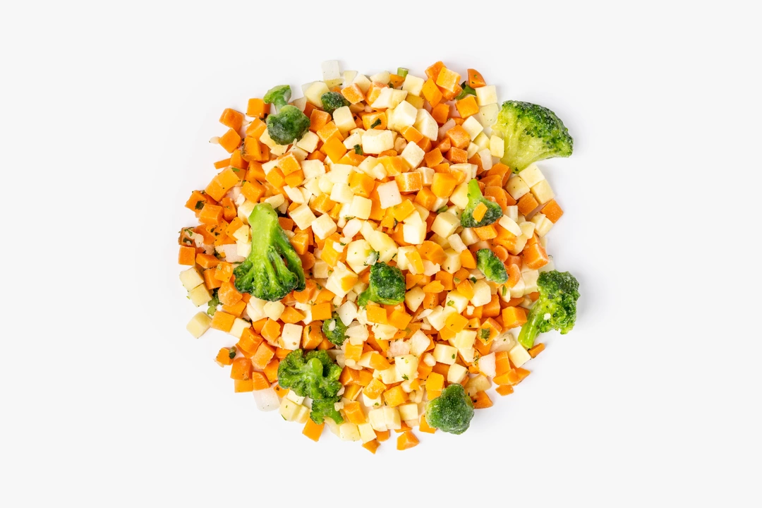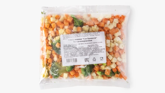 Эта замороженная смесь содержит необходимые ингредиенты для быстрого овощного блюда: картофель, морковь, лук и капуста брокколи. Овощи уже нарезаны и гармонично сочетаются между собой. Отварите их в воде или бульоне, добавьте крупу или мясо, пюрируйте или оставьте кусочками — овощная смесь не ограничивает вашу фантазию при приготовлении супа.