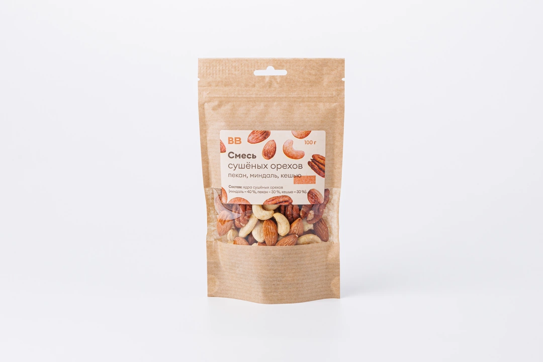 Смесь из трёх видов орехов с разными оттенками вкуса. Пекан придаёт ей маслянистую мягкость и карамельный привкус, миндаль добавляет свежесть и тонкую сладость, а кешью вносит сливочный акцент. Смесь хороша как лёгкий перекус в течение дня или дополнение к завтраку. Орехи можно добавить в кашу, мюсли или йогурт, чтобы сделать их более сытными. Несколько горстей можно использовать для выпечки или десертов, чтобы придать интересную текстуру и тёплый аромат. Продукт не содержит искусственных добавок.