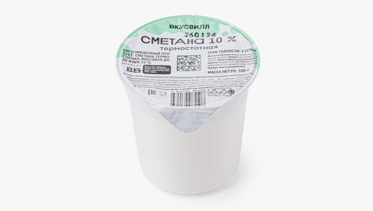 Нежная сметана с характерной лёгкой кислинкой и однородной текстурой. За счёт термостатного способа приготовления консистенция получается кремовая, без отделившейся сыворотки. Подходит для добавления в горячие блюда, соусы и выпечку, а также для подачи к супам и основным блюдам. Жирность 10% делает сметану лёгкой, но достаточно насыщенной.