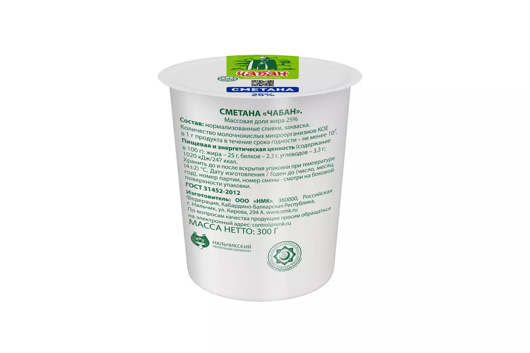 Сметана — полезный и питательный молочный продукт. Она оказывает благоприятное влияние на организм, способствует накоплению сил и энергии. Сметана «Чабан» сделана из лучшего молока племенного стада, пасущегося на альпийских лугах Северного Кавказа. Горный воздух, родниковая вода чистых источников, разнотравье альпийских лугов — составляющие компоненты молока, из которого сделаны наши продукты. Это флагманская линейка премиального качества, отмеченная значком «Халяль». Страна производитель-Россия