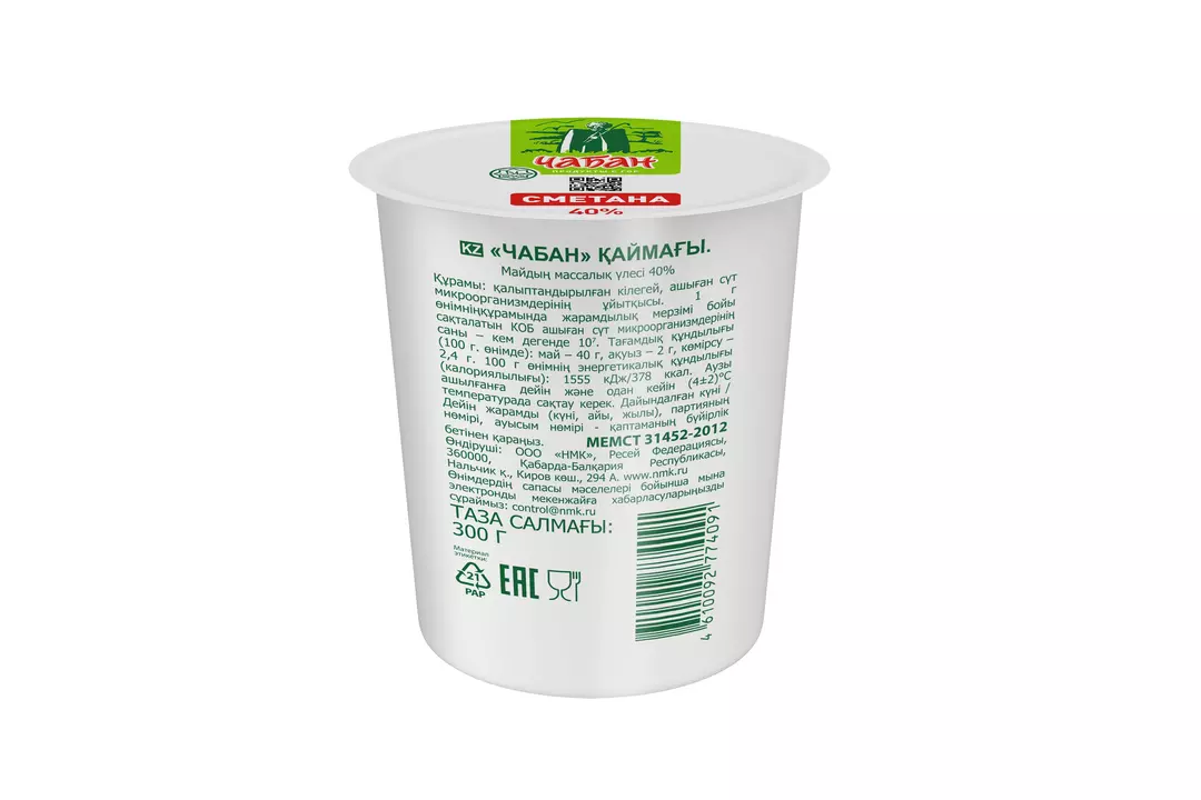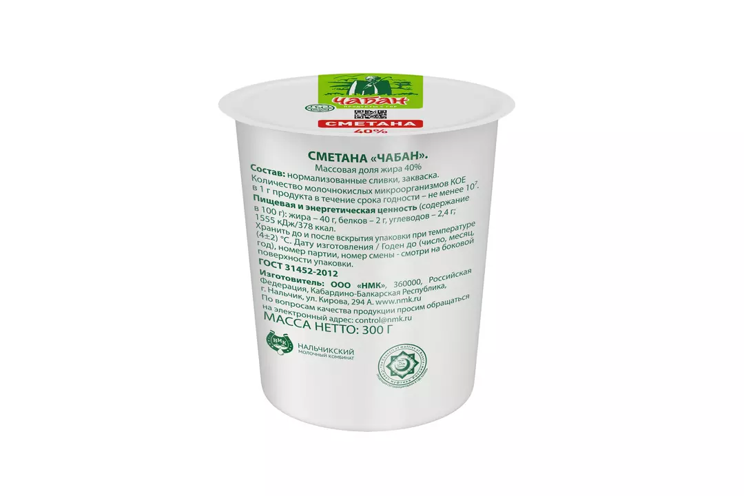 Сметана — полезный и питательный молочный продукт. Она оказывает благоприятное влияние на организм, способствует накоплению сил и энергии. Сметана «Чабан» сделана из лучшего молока племенного стада, пасущегося на альпийских лугах Северного Кавказа. Горный воздух, родниковая вода чистых источников, разнотравье альпийских лугов — составляющие компоненты молока, из которого сделаны наши продукты. Это флагманская линейка премиального качества, отмеченная значком «Халяль». Страна производитель-Россия
