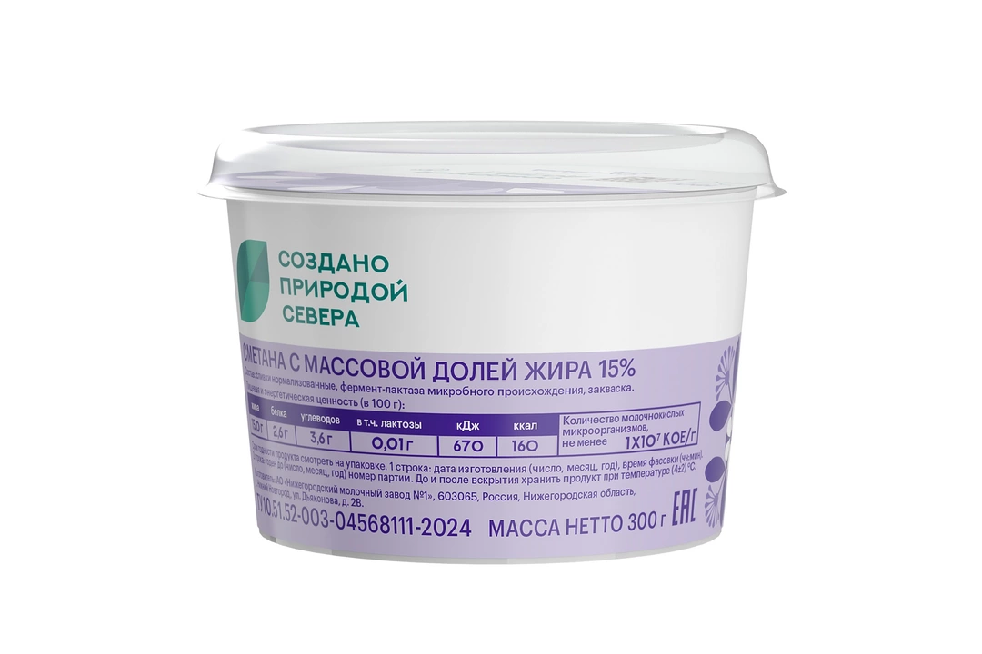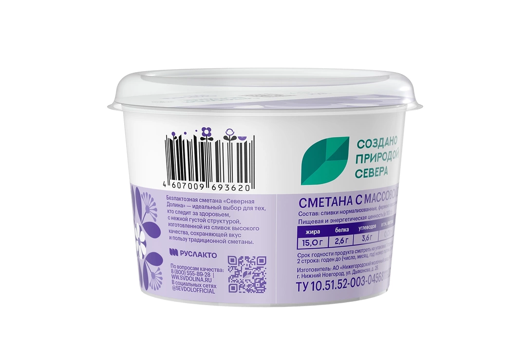 Сметана Северная Долина 15% безлактозная 180 г / Супермаркет