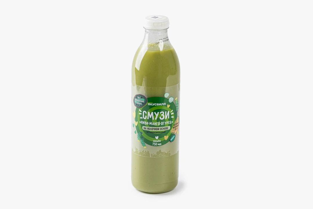 Смузи — натуральный, вкусный и полезный напиток, изготовленный из фруктовых пюре и соков. Во вкусе гармонично сплелись кислинка киви, свежесть огурца и тропические ноты манго. И без того полезный состав усилен питательными льняными семечками и витаминным премиксом. Добавленного сахара и консервантов в напитке нет. Изготовлен в Испании.