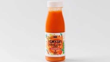 Натуральный смузи из морковного пюре, ананасового и яблочного соков, дополненный банановым пюре. Освежающий и питательный напиток приготовлен без добавленного сахара, консервантов или искусственных ароматизаторов