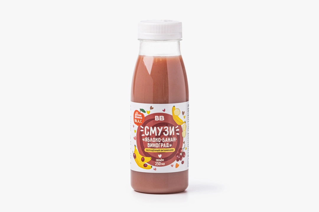 Смузи "Яблоко-банан-виноград" обогащенный витаминами, 250 мл