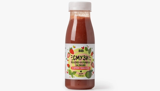 Смузи с сочным вкусом спелой клубники и неожиданной пряной нотой базилика. Он приготовлен на основе яблочного сока прямого отжима с добавлением пюре и целых ягод клубники. Сироп топинамбура придаёт ему мягкую натуральную сладость. Допускается естественное расслаивание смеси, поэтому перед употреблением смузи нужно хорошо взболтать.