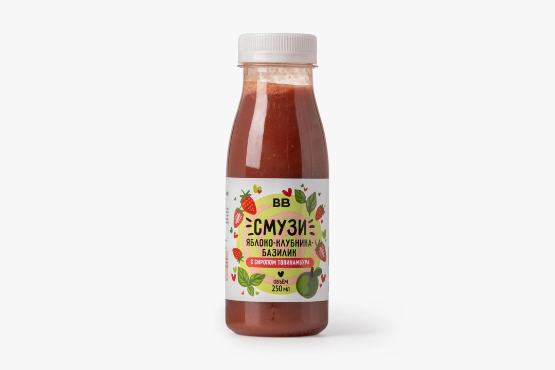 Смузи "Яблоко-клубника-базилик" с сиропом топинамбура, 250 мл