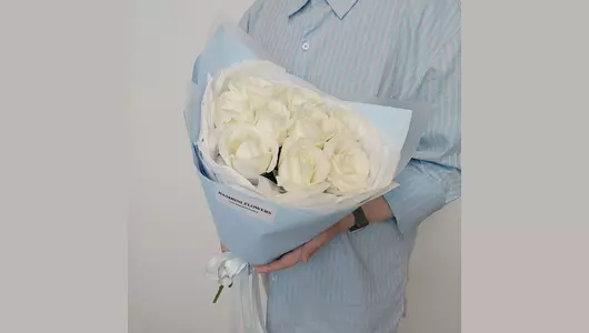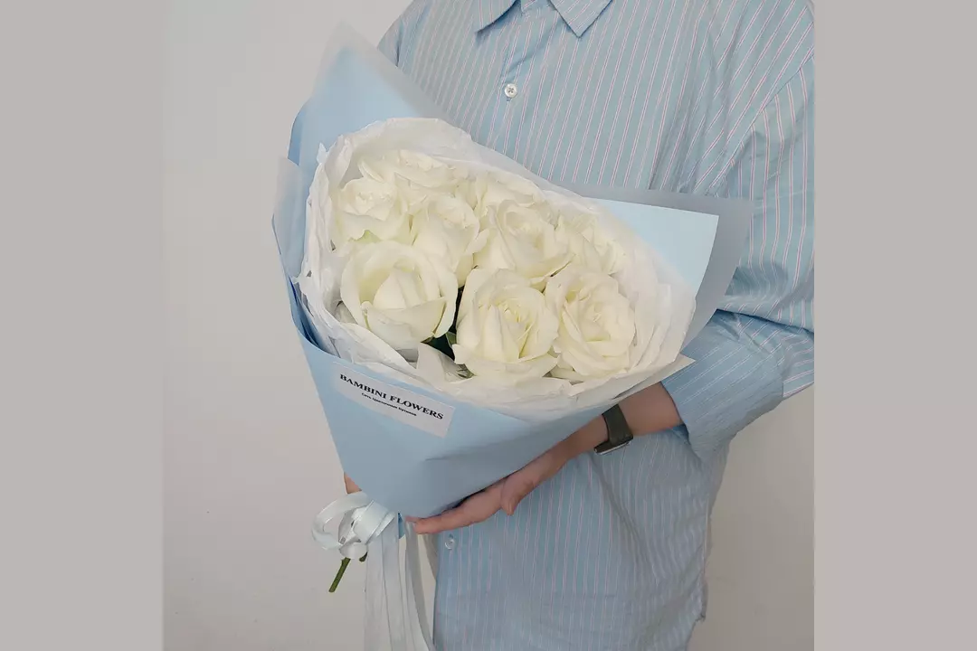 Словно зимнее утро в нежных объятиях! Этот букет от Bambini Flowers перенесет вас в сказочный мир чистоты и легкости. Белоснежные розы как застывший зефир! Уход: Чтобы продлить свежесть, подрежьте стебли и меняйте воду каждые два дня. И не забывайте, мы всегда готовы помочь с советом! Bambini Flowers: Мы создаем букеты с душой и заботимся о каждом клиенте, чтобы вы могли выразить свои чувства самым прекрасным образом!
