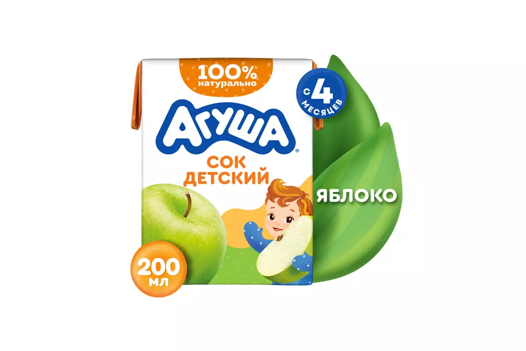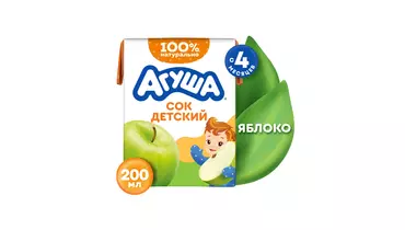 Сок детский Агуша Яблочный с 4 месяцев 200 мл / Супермаркет