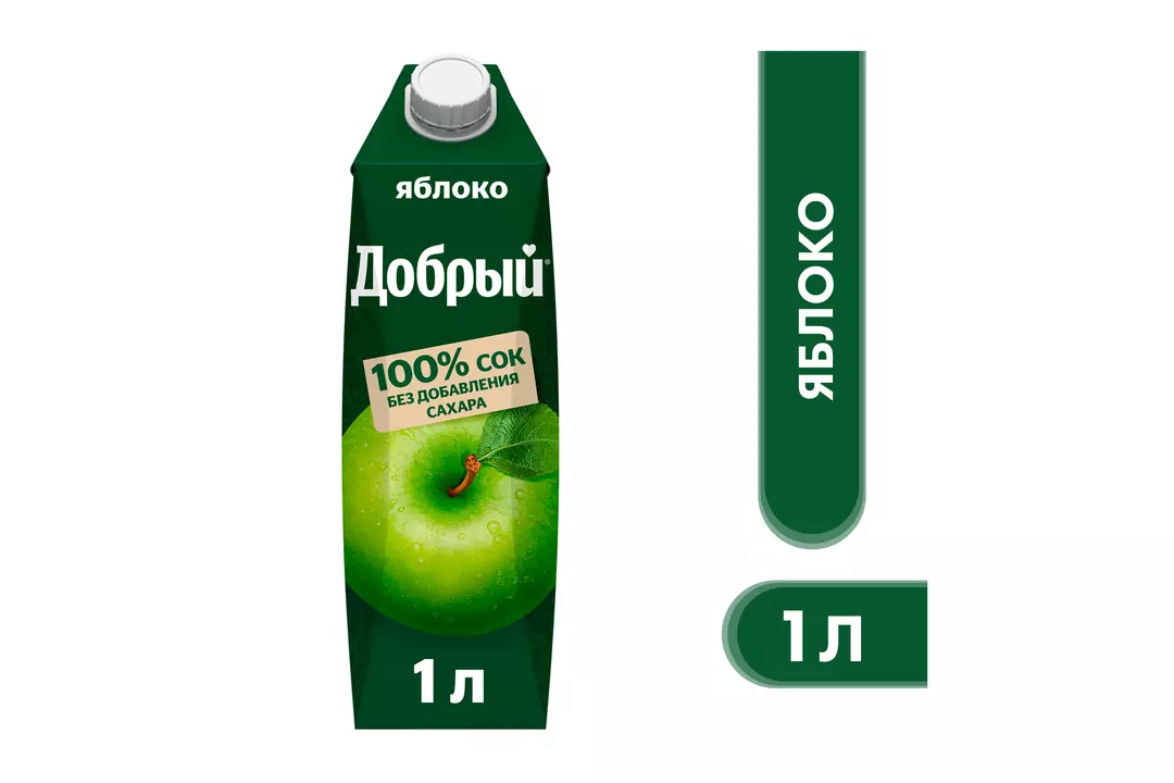 Добрый Яблоко 100% сок без добавления сахара, консервантов и красителей в удобной упаковке для семейного обеда или ужина. Страна-производитель Россия