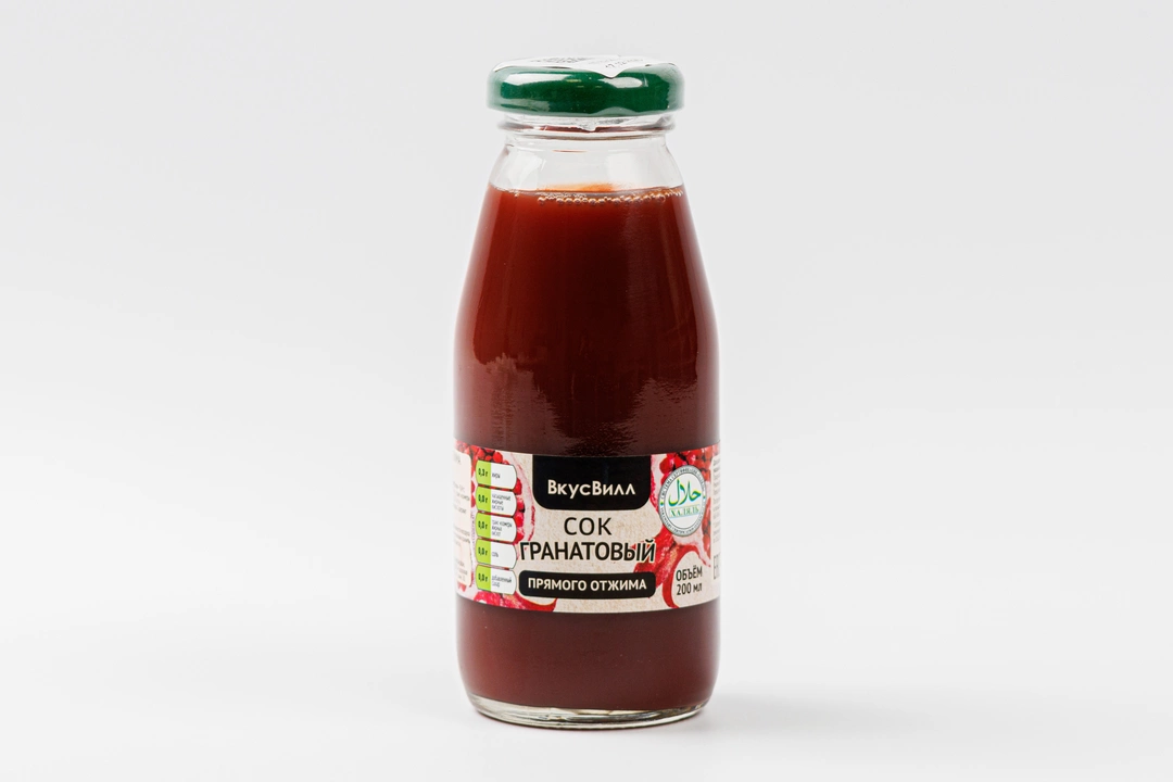 Натуральный сок прямого холодного отжима, без добавленного сахара. Сок изготавливают из гранатов разных сортов, благодаря чему его вкус оптимально сбалансирован по сладости, кислинке и терпкости. Напиток не проходит фильтрацию, поэтому из-за включений мякоти он слегка мутный. А насыщенность цвета зависит от купажа плодов. Страна-изготовитель: Азербайджан. Сок изготовлен по стандартам Халяль.