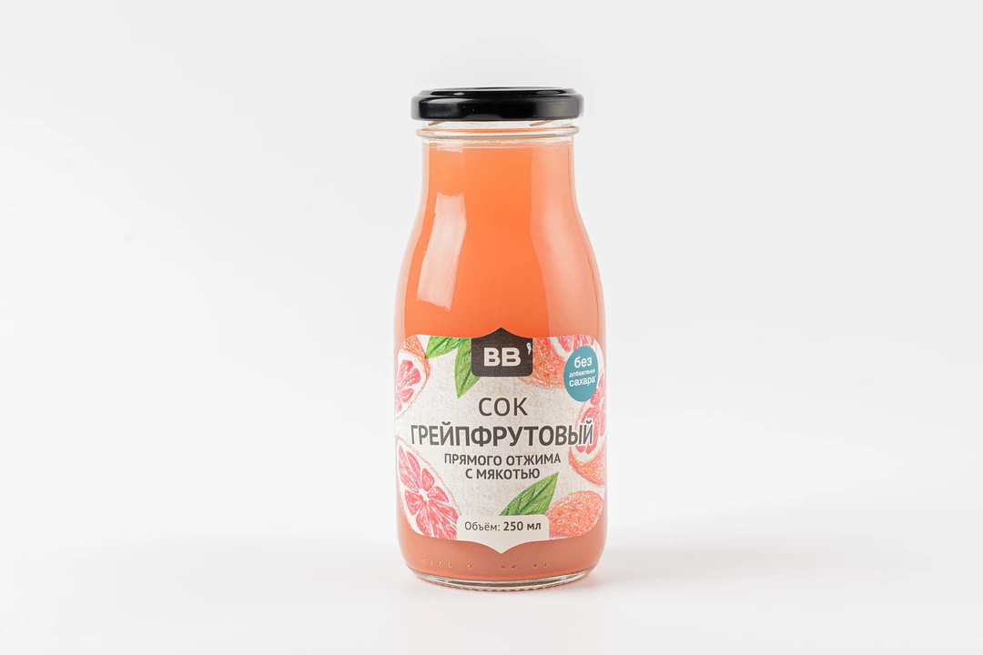 Грейпфрутовый сок с мякотью и без добавления сахара. Он изготовлен с помощью технологии прямого отжима, сохраняющей вкус и пользу свежих фруктов. Допускается образование осадка — это говорит о натуральном составе напитка и не влияет на его вкусовые качества. Рекомендуем перед употреблением слегка взболтать бутылку. Продукт подходит для приготовления смузи, коктейлей и домашних десертов.