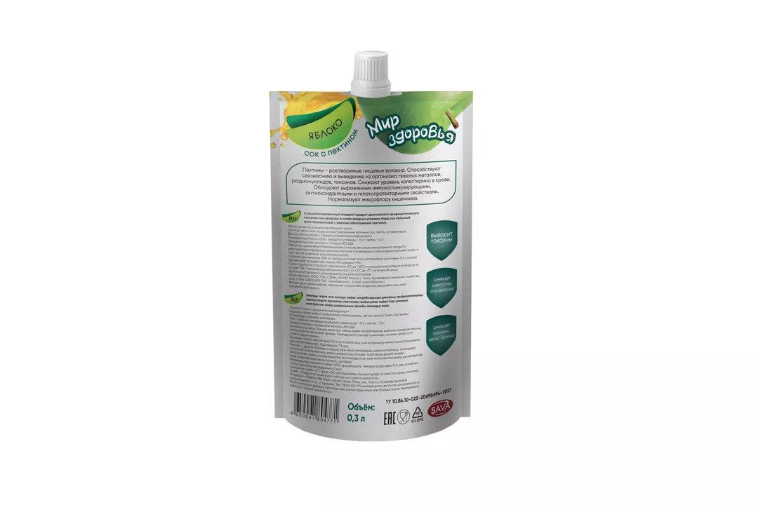 Сок Мир Здоровья яблоко восстановленный обогащенный пектином 300 мл / Супермаркет