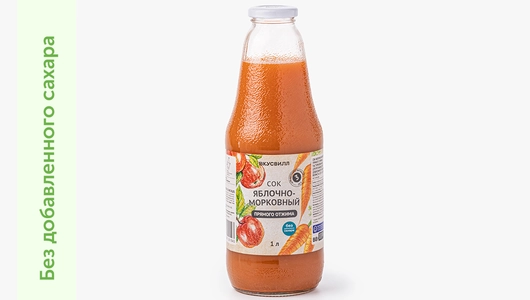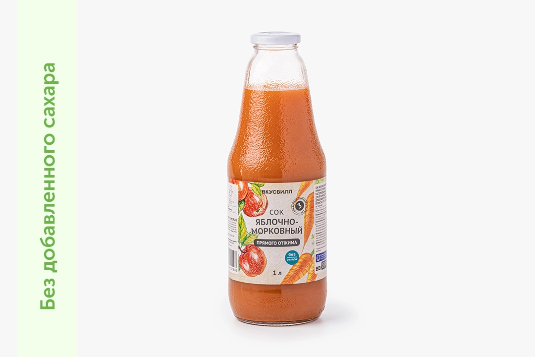 Сок прямого отжима с освежающим вкусом спелых яблок и мягкой сладостью моркови. Яблочная кислинка гармонично дополняется морковными нотками, создавая сбалансированный и приятный вкус. В составе только натуральный сок — без добавления сахара, консервантов, искусственных ароматизаторов и красителей. Содержит сахара природного происхождения. Возможен естественный осадок. Рекомендуем встряхнуть перед употреблением.