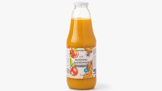 Сок прямого отжима из яблок и тыквы с мягким, гармоничным вкусом. Яблоко придаёт напитку естественную сладость и сочность, а тыква добавляет деликатную плотность и тёплый овощной оттенок. Вкус получается сбалансированным, без резкой кислинки, с гладкой текстурой. В составе только соки — без добавления сахара, консервантов, искусственных ароматизаторов и красителей. Содержит сахара природного происхождения. Возможен естественный осадок. Рекомендуем встряхнуть перед употреблением.